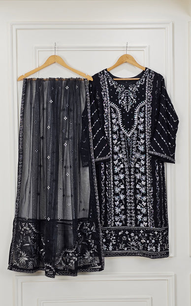 Celebrate tradition in style with this heavily embroidered suit, featuring fine craftsmanship and rich thread detailing across the kurta and dupatta. A perfect blend of heritage and contemporary flair for festive occasions.