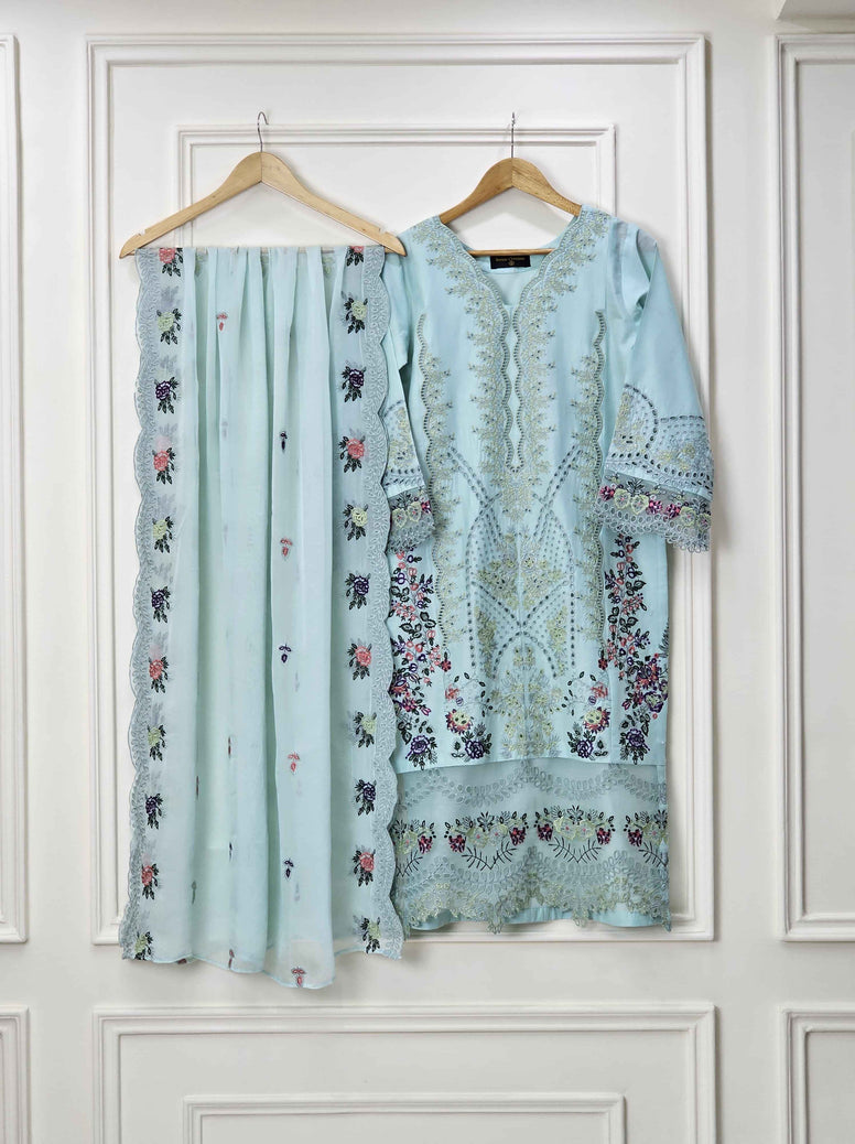 Experience the ultimate in comfort and style with our Three-Piece Treasure set. Made from high-quality cotton, this suit includes a luxurious chiffon dupatta. Stay cool and fashionable with this must-have addition to your wardrobe. Perfect for any occasion, you'll feel confident and effortlessly chic.